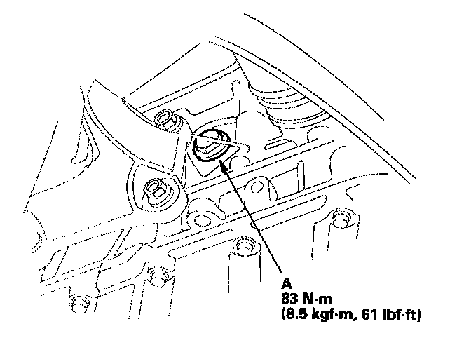4. Remove the drain bolt (A) from the right side of the cylinder block.