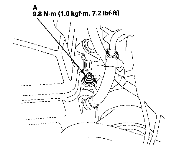 10. Loosen the air bleed bolt (A) in the intake manifold.