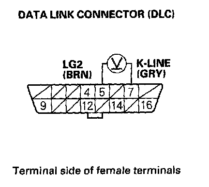 13. Measure voltage between DLC terminals No. 5 and No. 7.