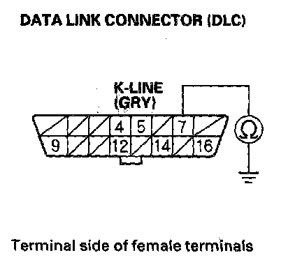 8. Check for continuity between DLC terminal No. 7 and body ground.