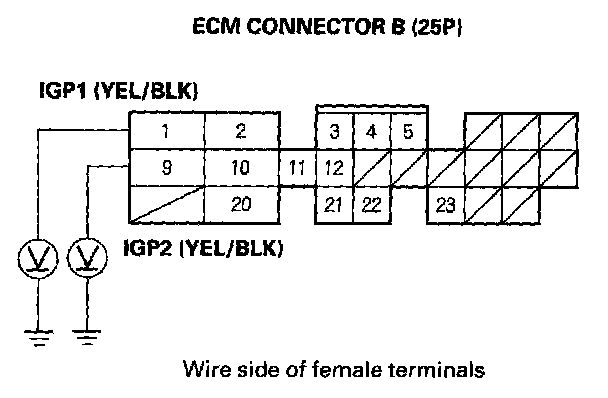 - An open in the wire(s) between the PGM-FI main relay and ECM connector terminals B1 and B9.