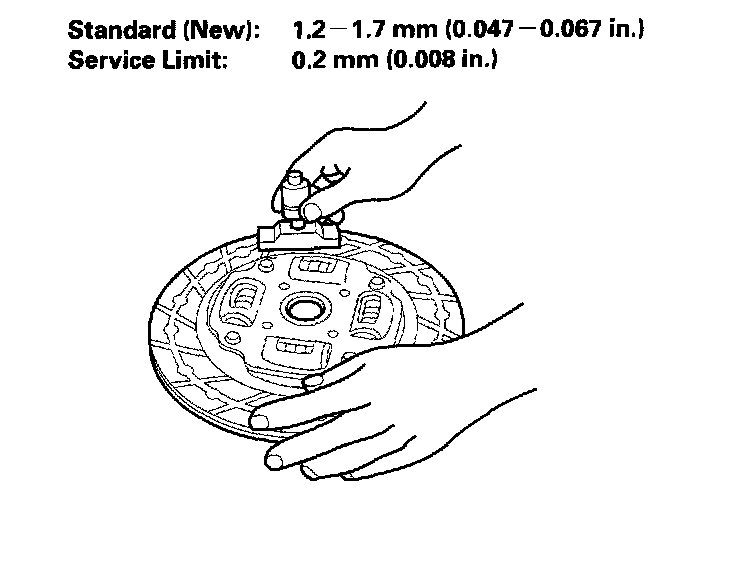 Measure the clutch disc thickness. If the thickness is less than the service limit, replace the clutch disc