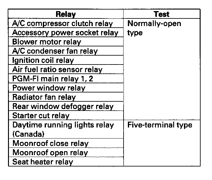 Use this chart to identify the type of relay, then do the test listed for it.