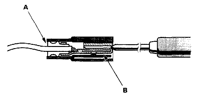 3. If you cannot get to the wire side of the connector or the wire side is sealed (A), disconnect the connector, and probe the terminals (B) from the terminal side. Do not force the probe into the connector.