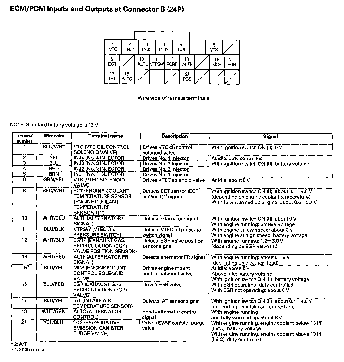 Home >> Honda >> 2005 >> Accord L4-2.4L >> Repair and Diagnosis >> Relays and Modules >> Relays and Modules - Powertrain Management >> Relays and Modules - Computers and Control Systems >> Engine Control Module >> Testing and Inspection >> Pinout Values and Diagnostic Parameters