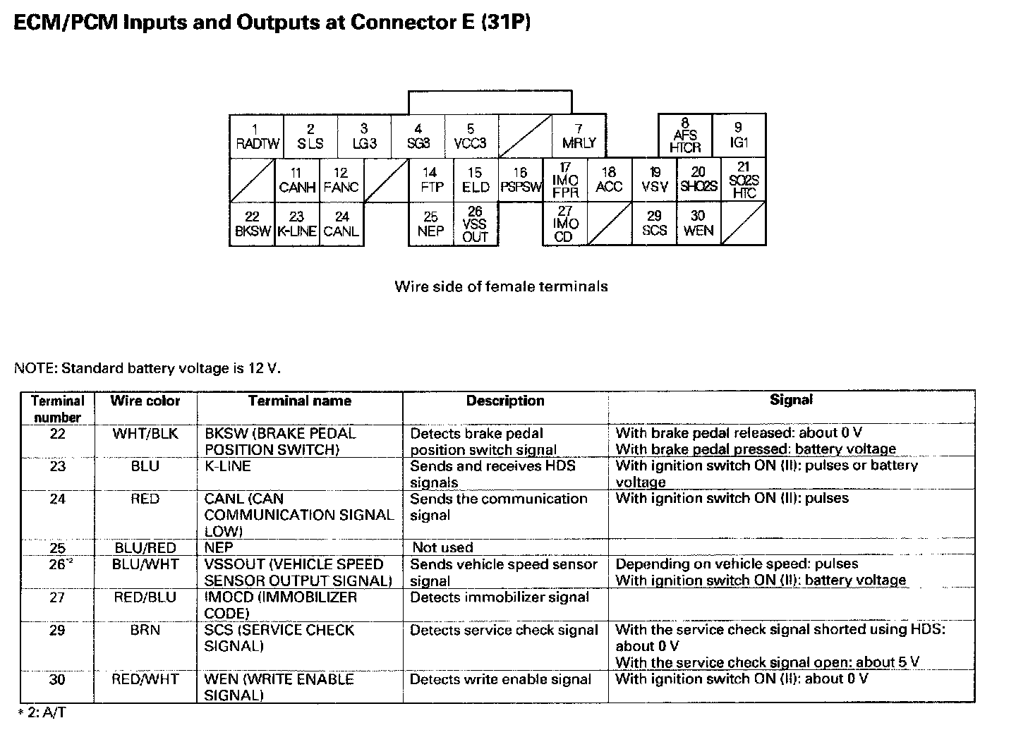 ECM/PCM Inputs And Outputs At Connector E (31P) Part 2: