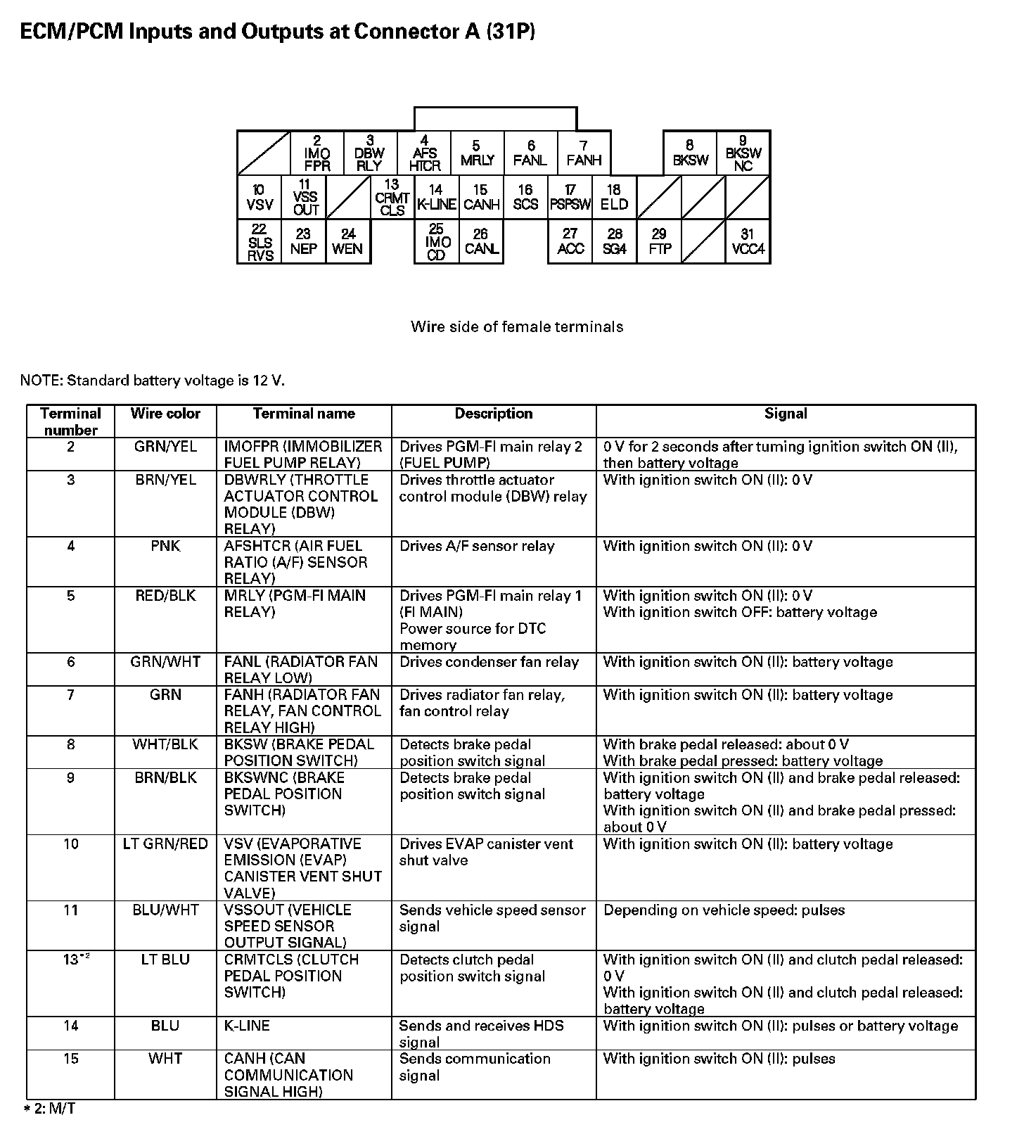 ECM/PCM Inputs And Outputs At Connector A (31P) Part 1: