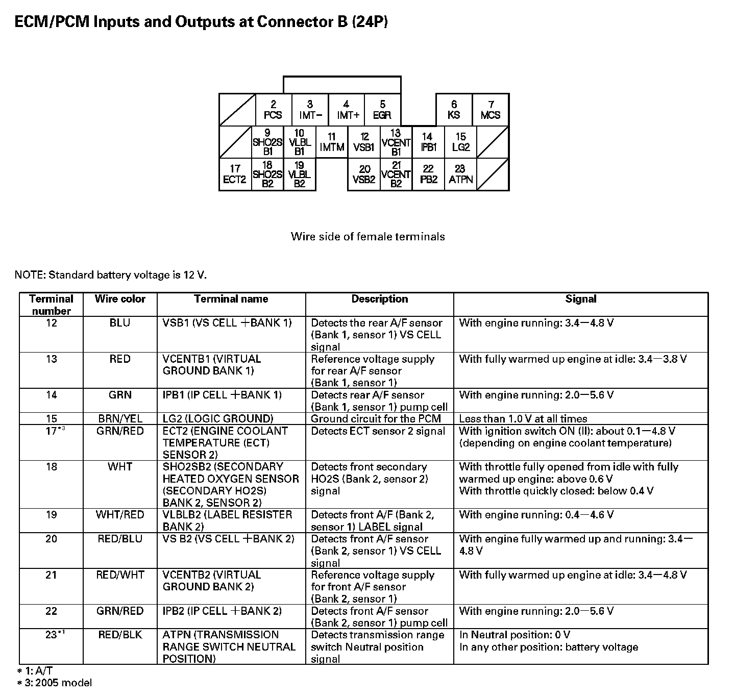 ECM/PCM Inputs And Outputs At Connector B (24P) Part 1: