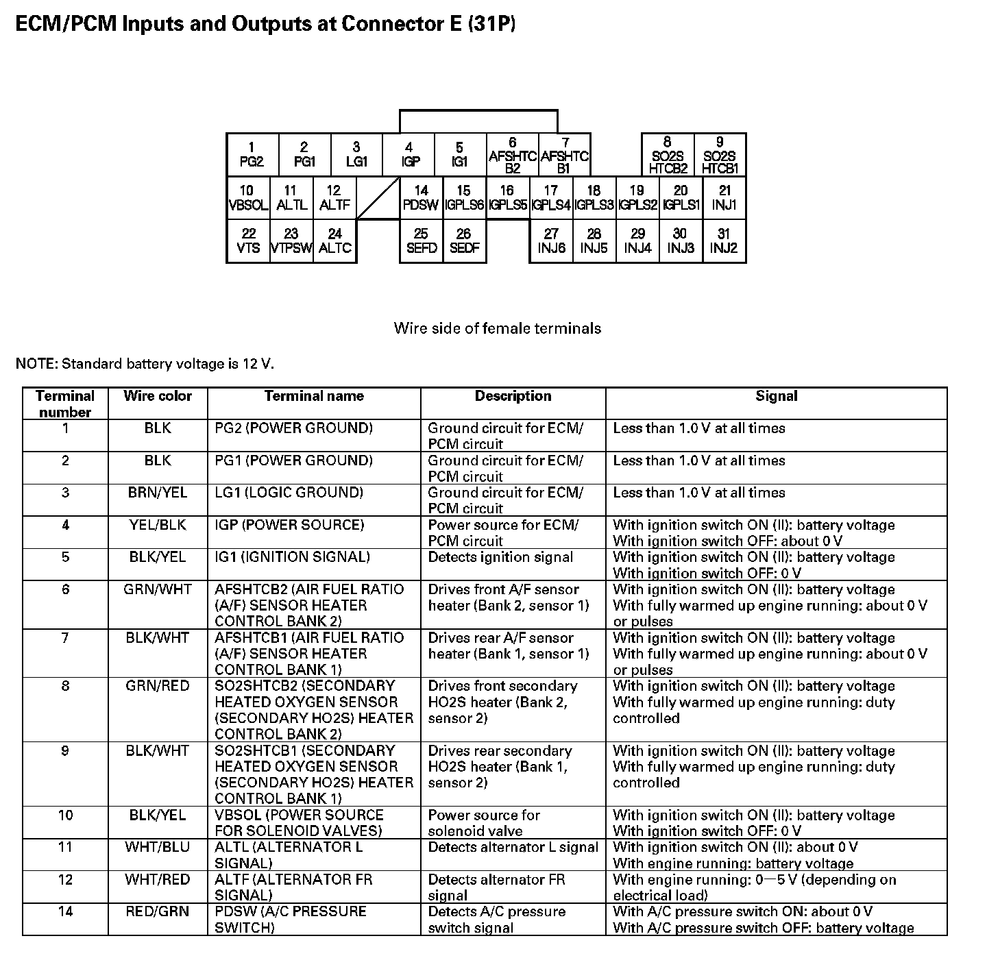 ECM/PCM Inputs And Outputs At Connector E (31P) Part 1: