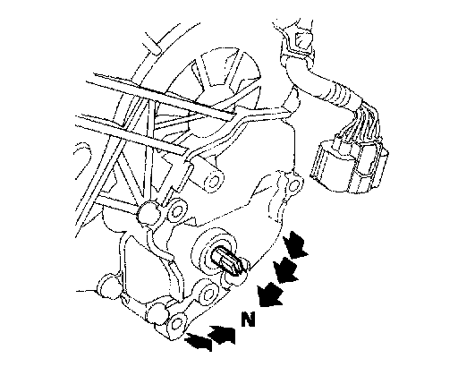 6. Make sure the selector control shaft is in the N position. If necessary, move the shift lever to the N position.
