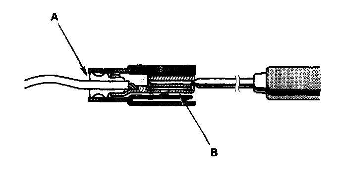 3. If you cannot get to the wire side of the connector or the wire side is sealed (A), disconnect the connector and probe the terminals (B) from the terminal side. Do not force the probe into the connector.