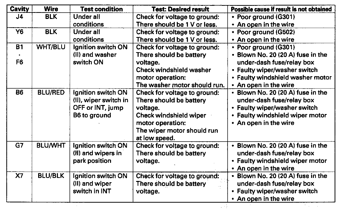 Home >> Honda >> 2005 >> CR-V 2WD L4-2.4L >> Repair and Diagnosis >> Wiper and Washer Systems >> Wiper Control Module >> Testing and Inspection >> Control Unit Input Test