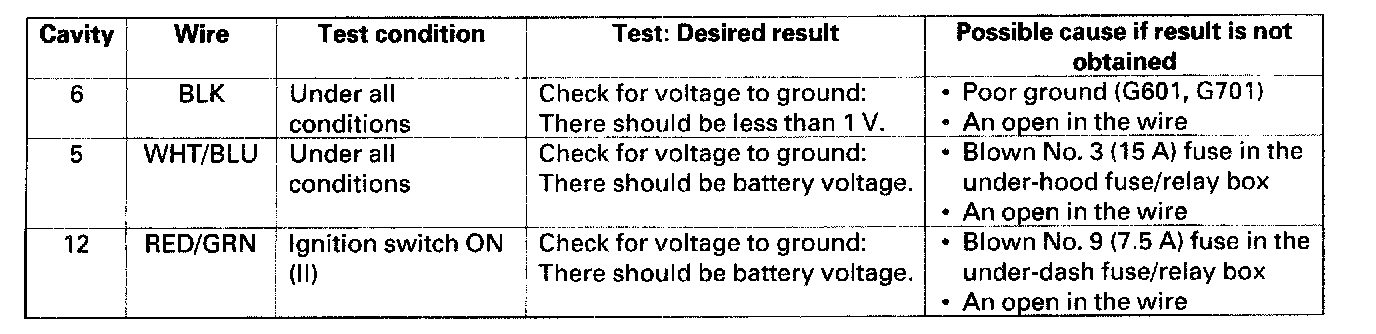 4. Reconnect the connector, and make these input tests at the connector.