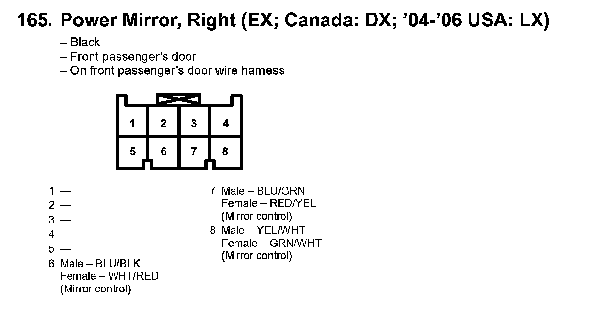 164. Power Mirror, Right (EX; Canada: DX; '04-'06 USA: LX):