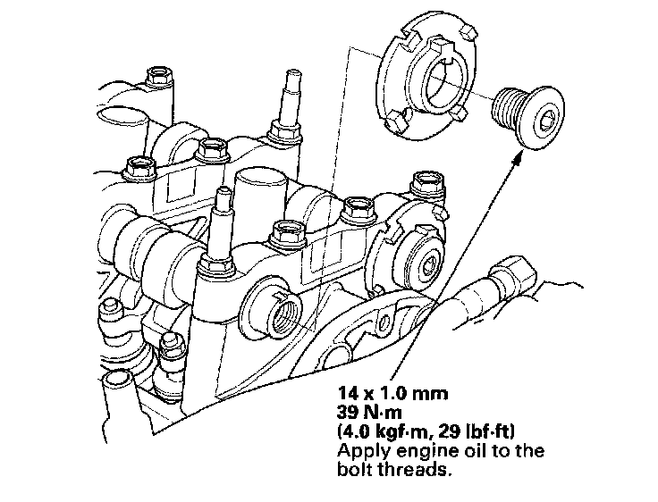 2. Hold the camshaft with an open-end wrench, then loosen the bolt.