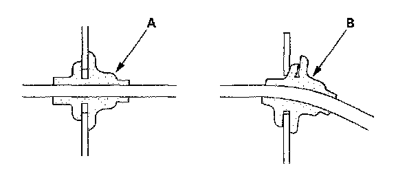 - Check for loose retainer (A) and rubber seals (B).