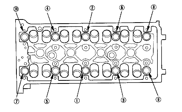 Tighten the cylinder head bolts in sequence to 39 Nm (4.0 kgf-m, 29 ft. lbs.) using a beam-type torque wrench. When using a preset-type torque wrench, be sure to tighten slowly and do not overtighten. If a bolt makes any noise while you are torquing it, loosen the bolt and retighten it from the first step.