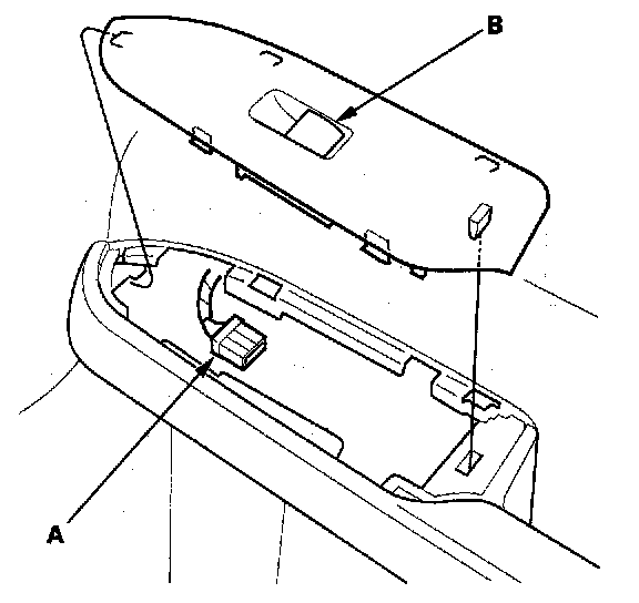 3. Disconnect the 5P connector (A) from the front passenger's power window switch (B).