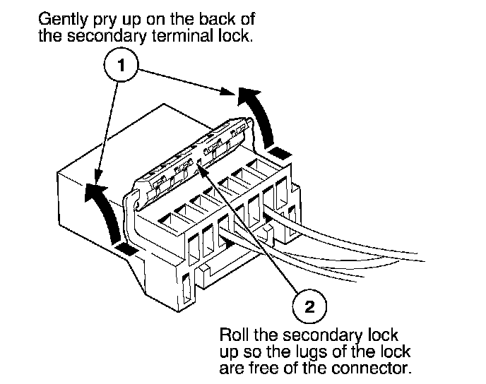 - If it has a secondary terminal lock, go to Connectors With a Secondary Lock. A secondary lock, found on most connectors on some models, is an additional locking device on the connector housing as a backup for the primary lock on the terminal.