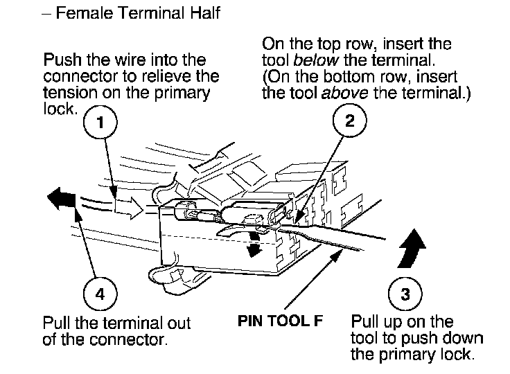 Home >> Honda >> 2005 >> Element 4WD L4-2.4L >> Repair and Diagnosis >> Powertrain Management >> Computers and Control Systems >> Engine Control Module >> Diagrams >> Diagnostic Aids >> Terminal Replacement Procedures >> How to Replace Connector Terminals