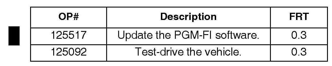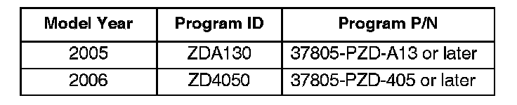1. Update the ECM with the HDS and software version 2.012.013 or later. Refer to Service Bulletin 01-023, Updating Control Units/Modules.