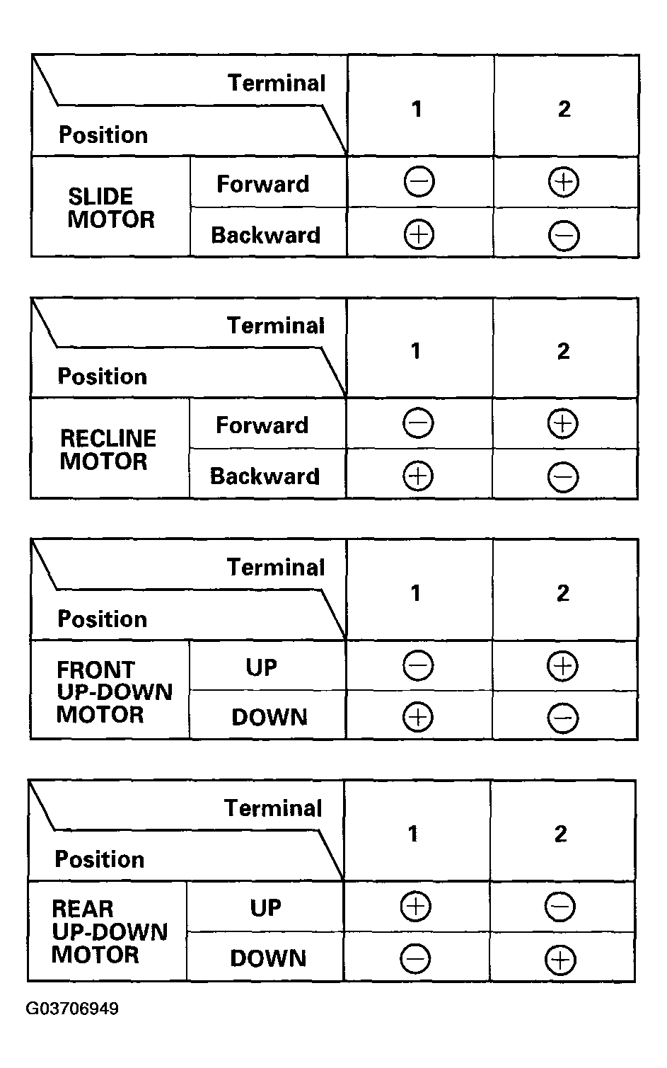 Home >> Honda >> 2005 >> Odyssey EX >> Repair and Diagnosis >> Body & Frame >> Seats >> Driving Position Memory Systems (DPMS) >> Driver's Power Seat Motor Test