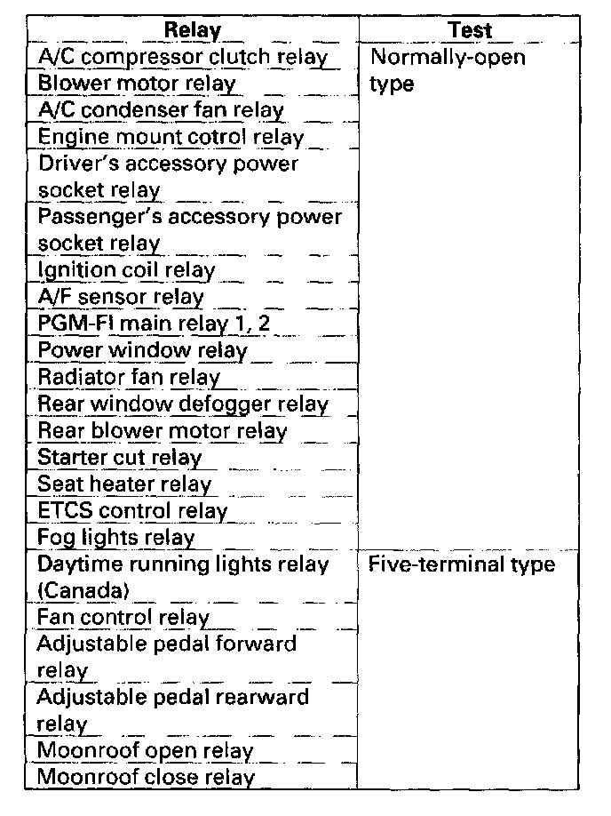 Power Relay TestUse this chart to identify the type of relay, then do the test listed for it.