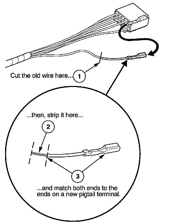 3. Select a pigtail terminal that matches the original wire at both ends (same kind of terminal and same diameter bare wire).