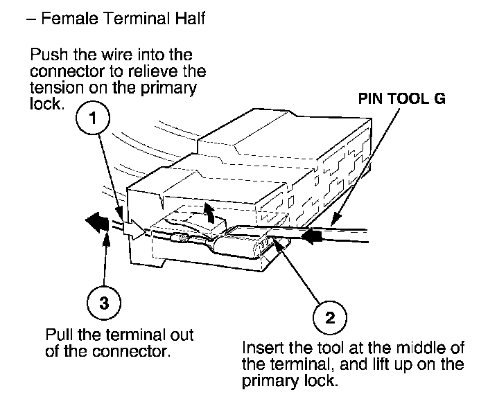 Home >> Honda >> 2005 >> Odyssey V6-3.5L >> Repair and Diagnosis >> Relays and Modules >> Relays and Modules - Powertrain Management >> Relays and Modules - Computers and Control Systems >> Engine Control Module >> Diagrams >> Diagnostic Aids >> Terminal Replacement Procedures >> How to Replace Connector Terminals