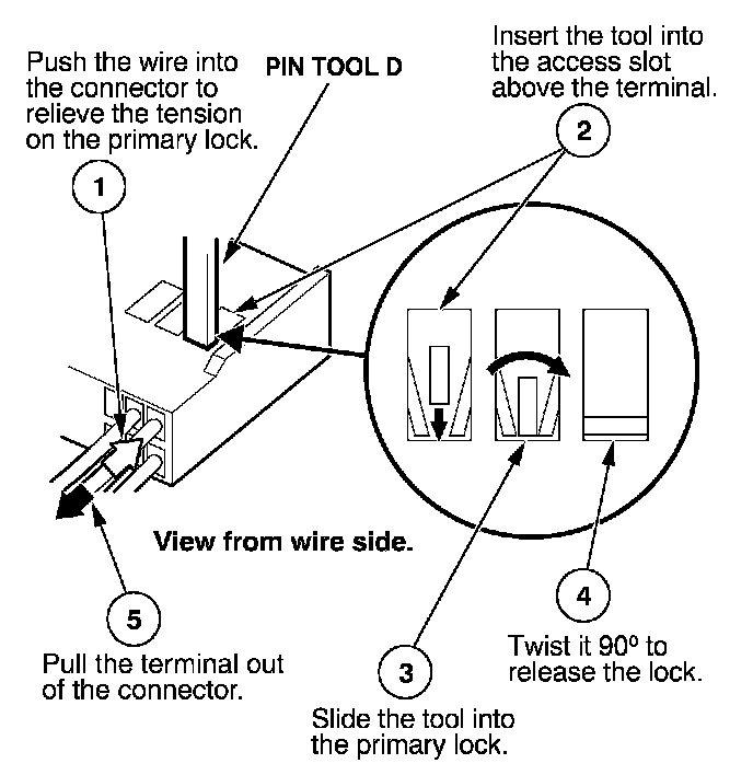 Before you begin, inspect the wire you are about to repair for damage and length. Make sure the wire will be long enough to make a terminal repair without stretching it when you reinstall the terminal in the connector. If the wire is too short, or if access to the connector is too restricted to make a terminal repair, you may need to install a pigtail terminal (a short length of wire with a factory-crimped terminal on it). Refer to HOW TO INSTALL PIGTAIL TERMINALS.