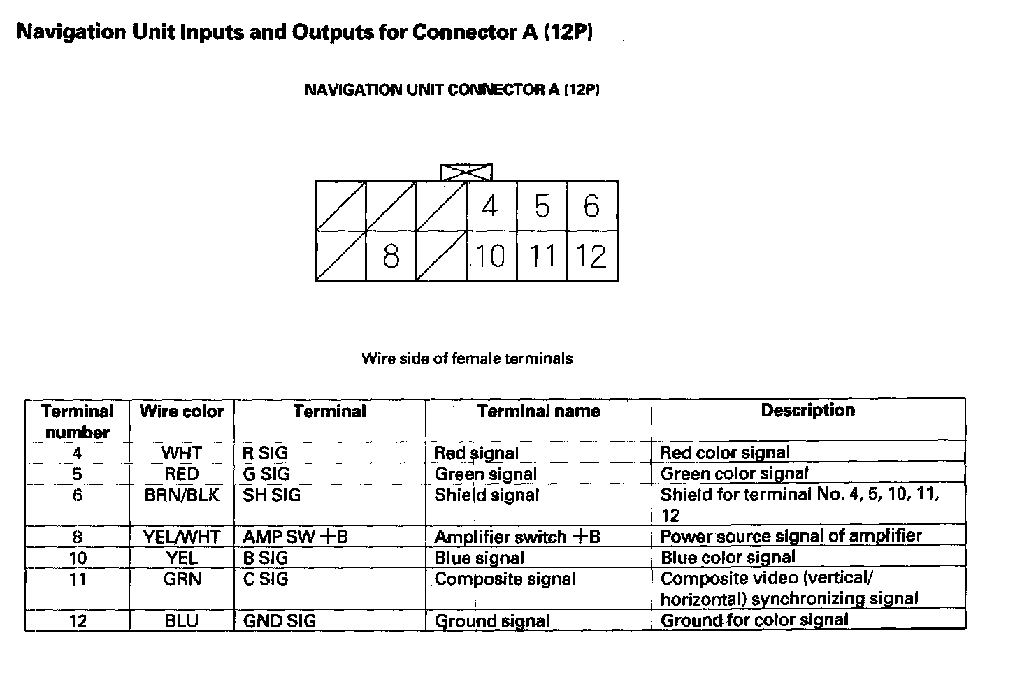Navigation Unit Inputs And Outputs For Connector A (12P) Part 1:
