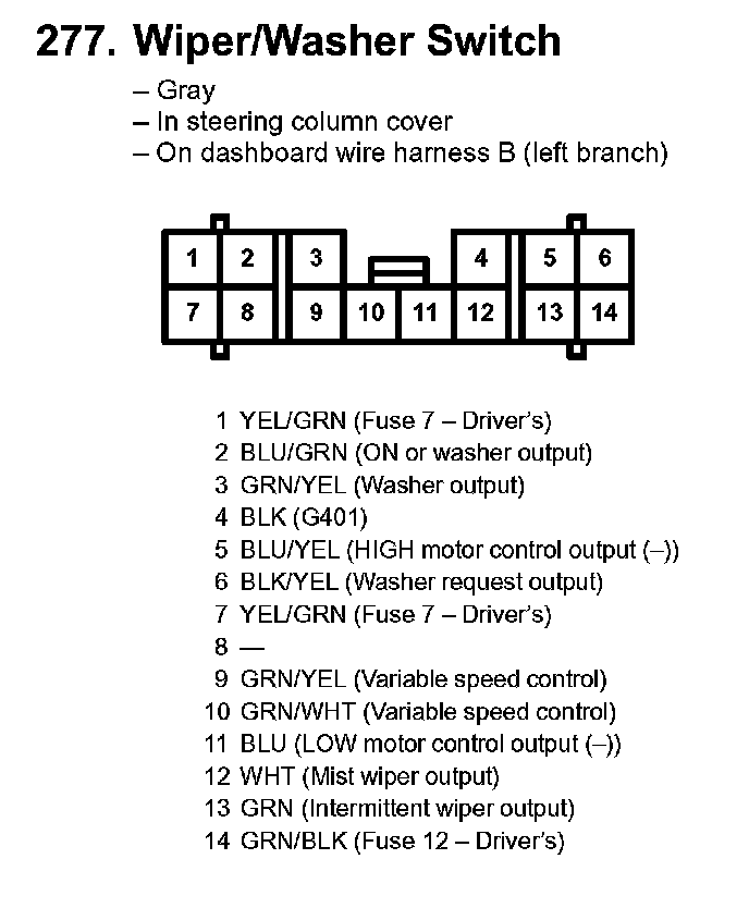 277. Wiper/Washer Switch: