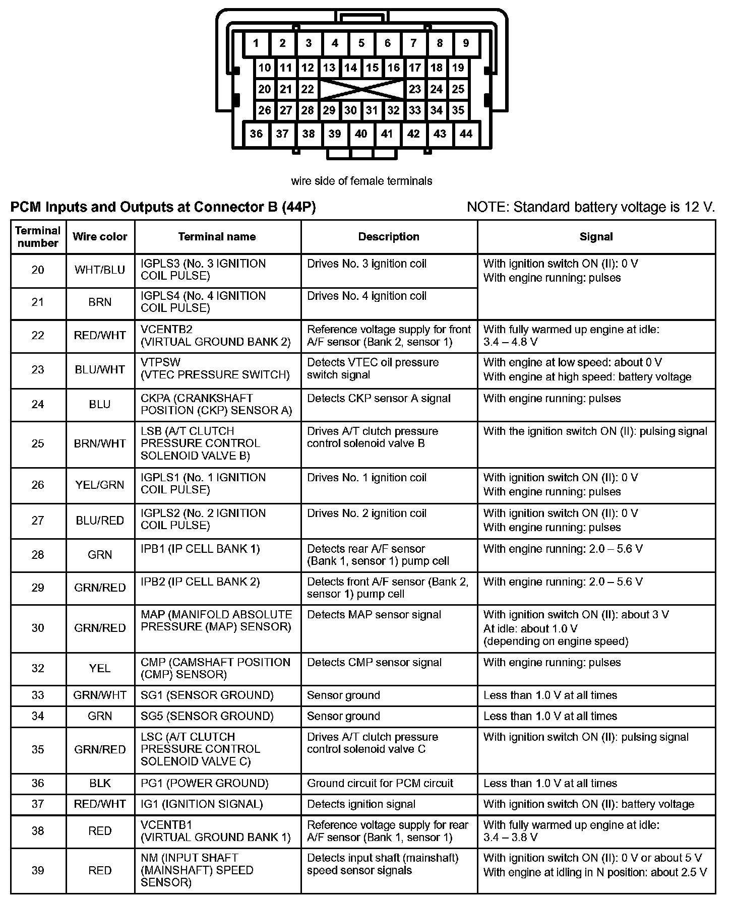 PCM Inputs And Outputs At Connector B (44P) Part 1: