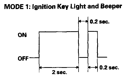 4. After about 5 seconds, the ignition key light should come on and the beeper should beep for 2 seconds, go off for 0.2 seconds, then blink and beep for 0.2 second. This means that you are in Mode 1 of the self-diagnosis function. Check self-diagnosis function Mode 1 for a diagnostic trouble code (DTC).