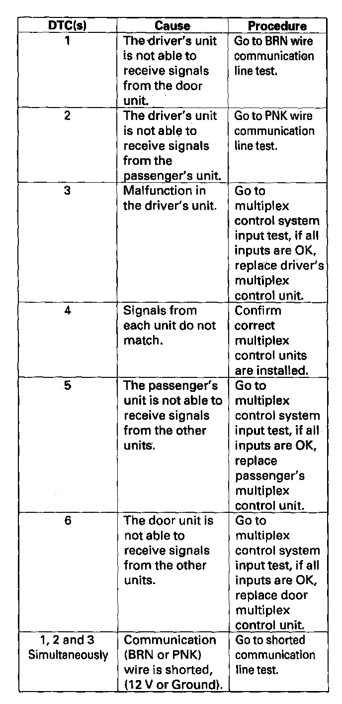 Mode 1 is a communication line and CPU self test. If a problem occurs on a communication wire or with an individual control unit the multiplex system will store a DTC as long as the fault is still present.