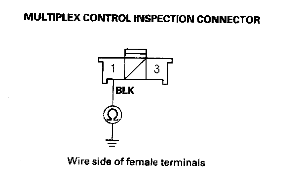 14. Check for continuity between the No. 1 terminal of the multiplex control inspection connector and body ground.