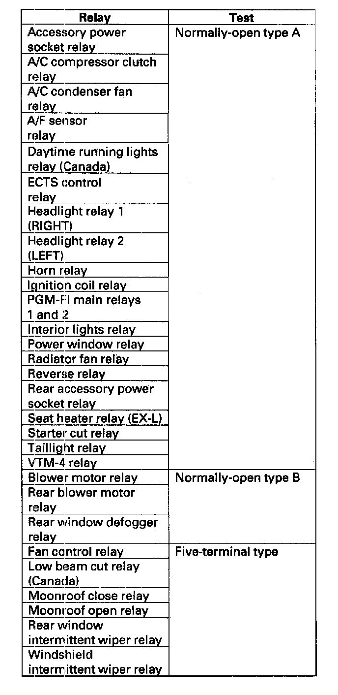 Use this chart to identify the type of relay, then do the test listed for it.