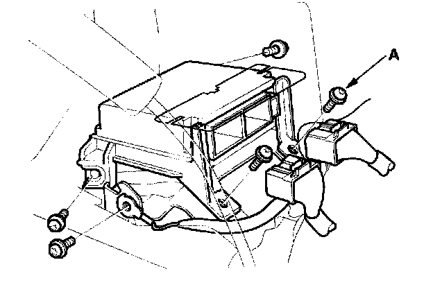 4. Pull down the console carpet on the driver's side and passenger's side, then disconnect the connectors. Remove the Torx bolts (A), then pull out the SRS unit.