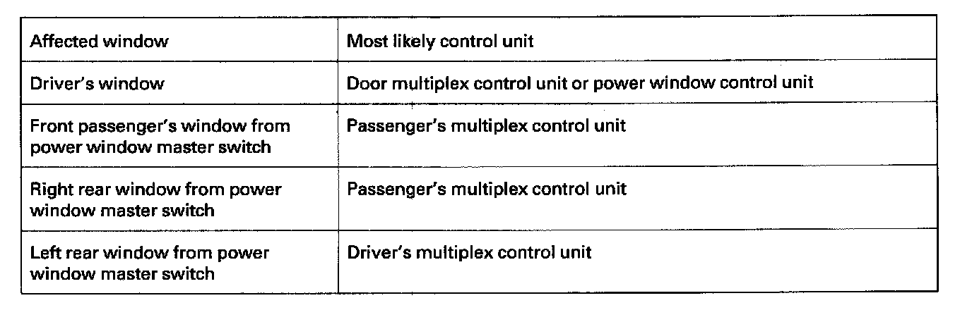 1. Before testing the power window control functions, troubleshoot the multiplex control system.