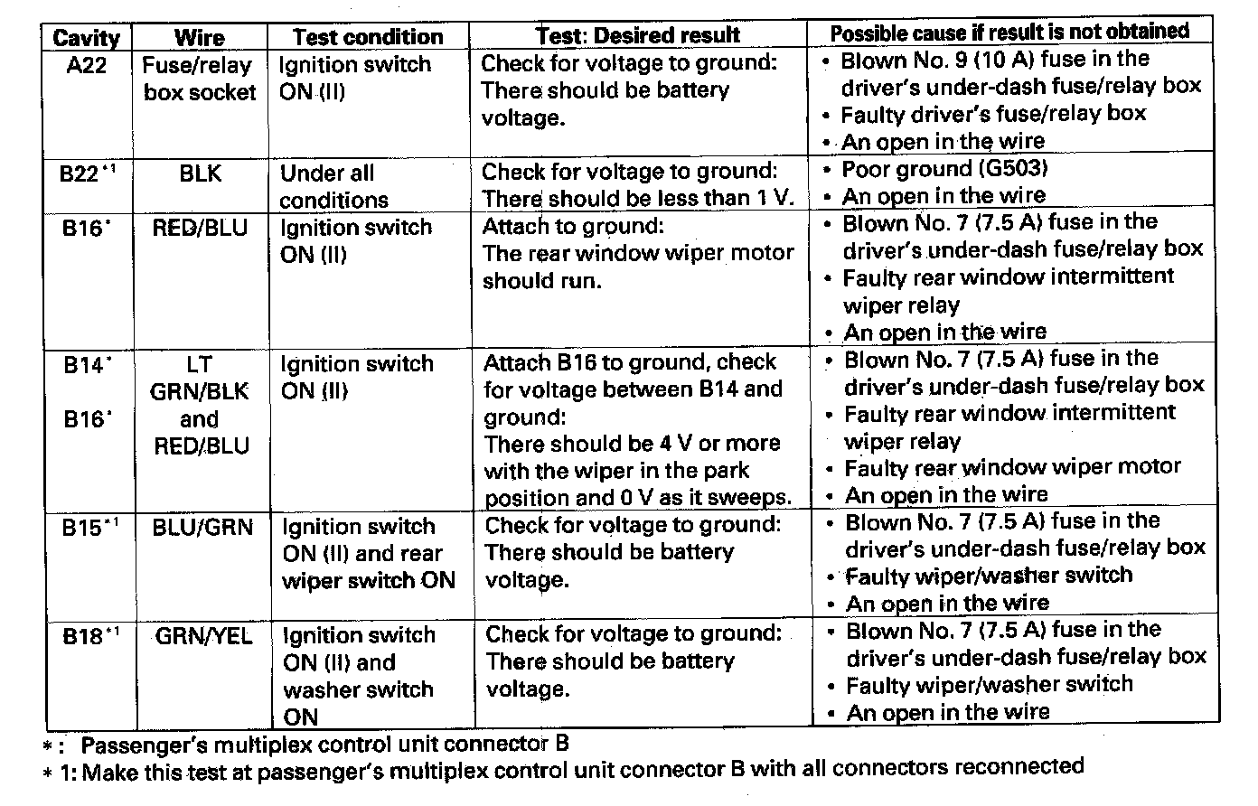 1. Before testing the wiper/washer control functions, troubleshoot the multiplex control system.