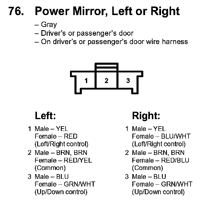 76. Power Mirror, Left Or Right: