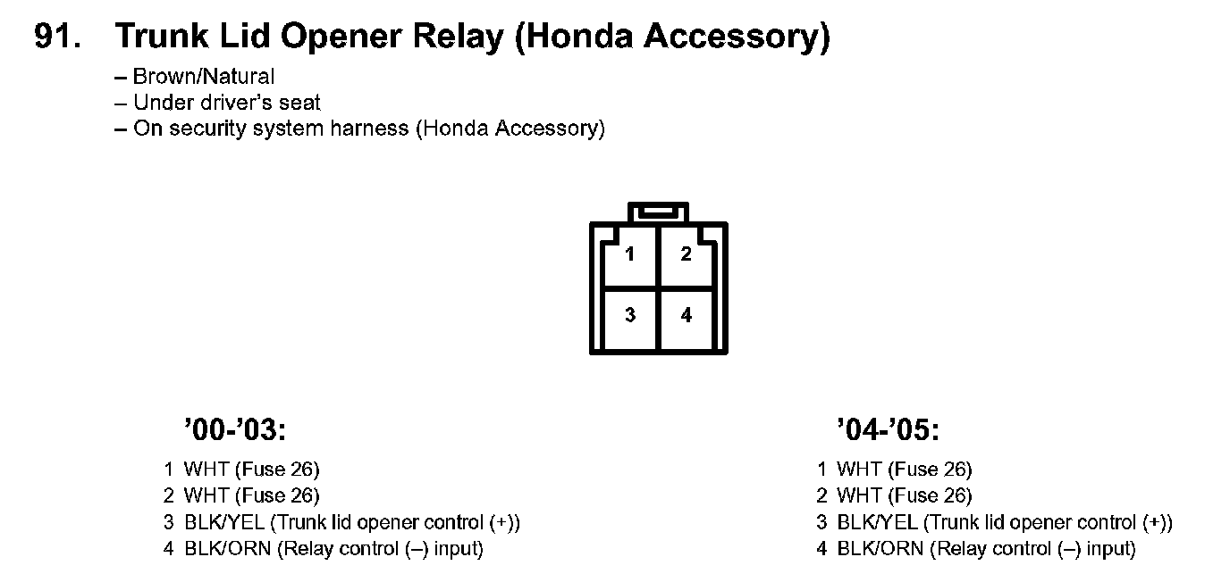 91. Trunk Lid Opener Relay (Honda Accessory):