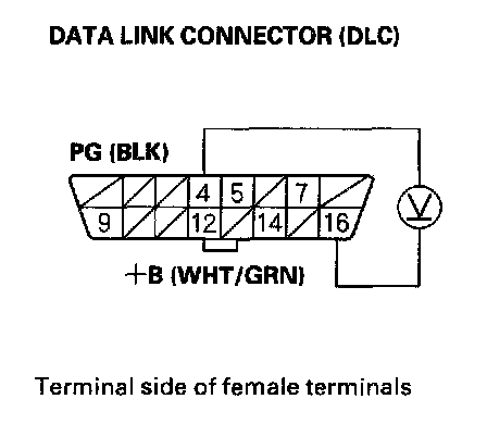2. Measure voltage between DLC terminals No. 4 and No.16.