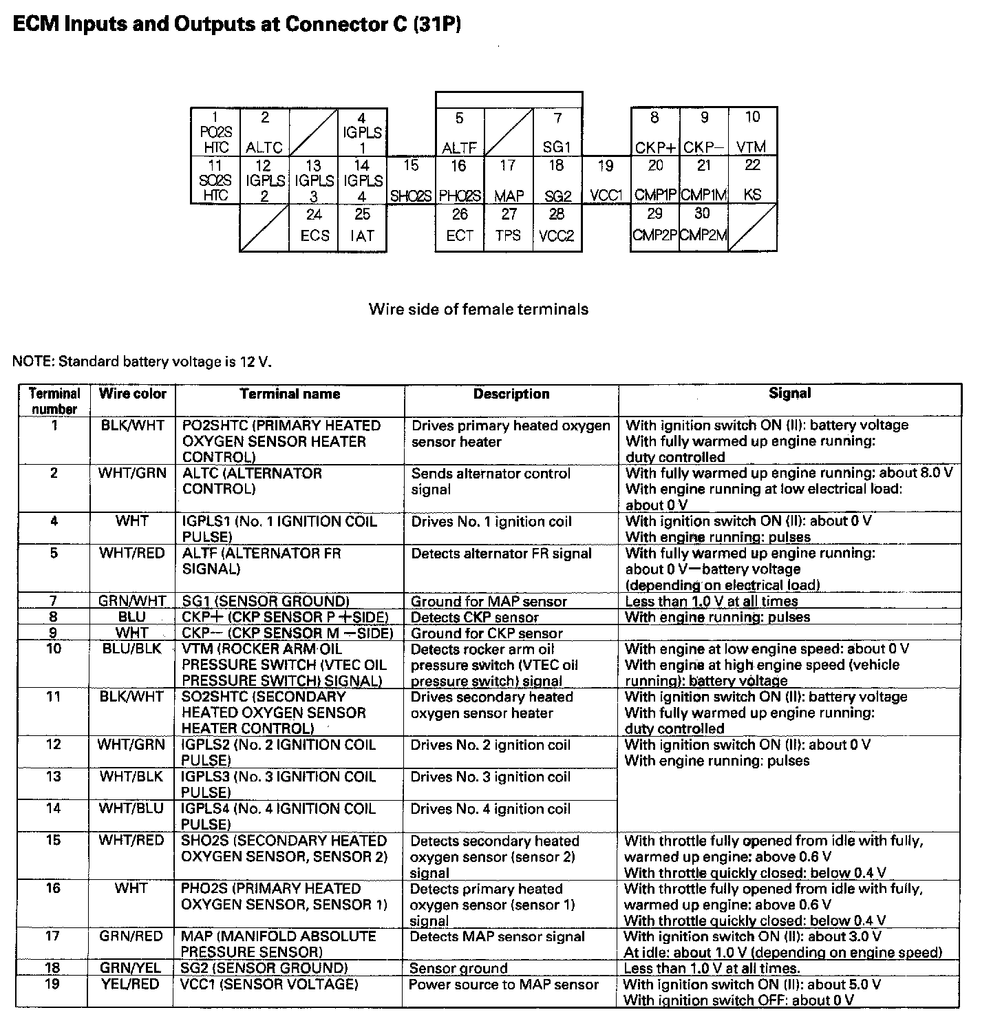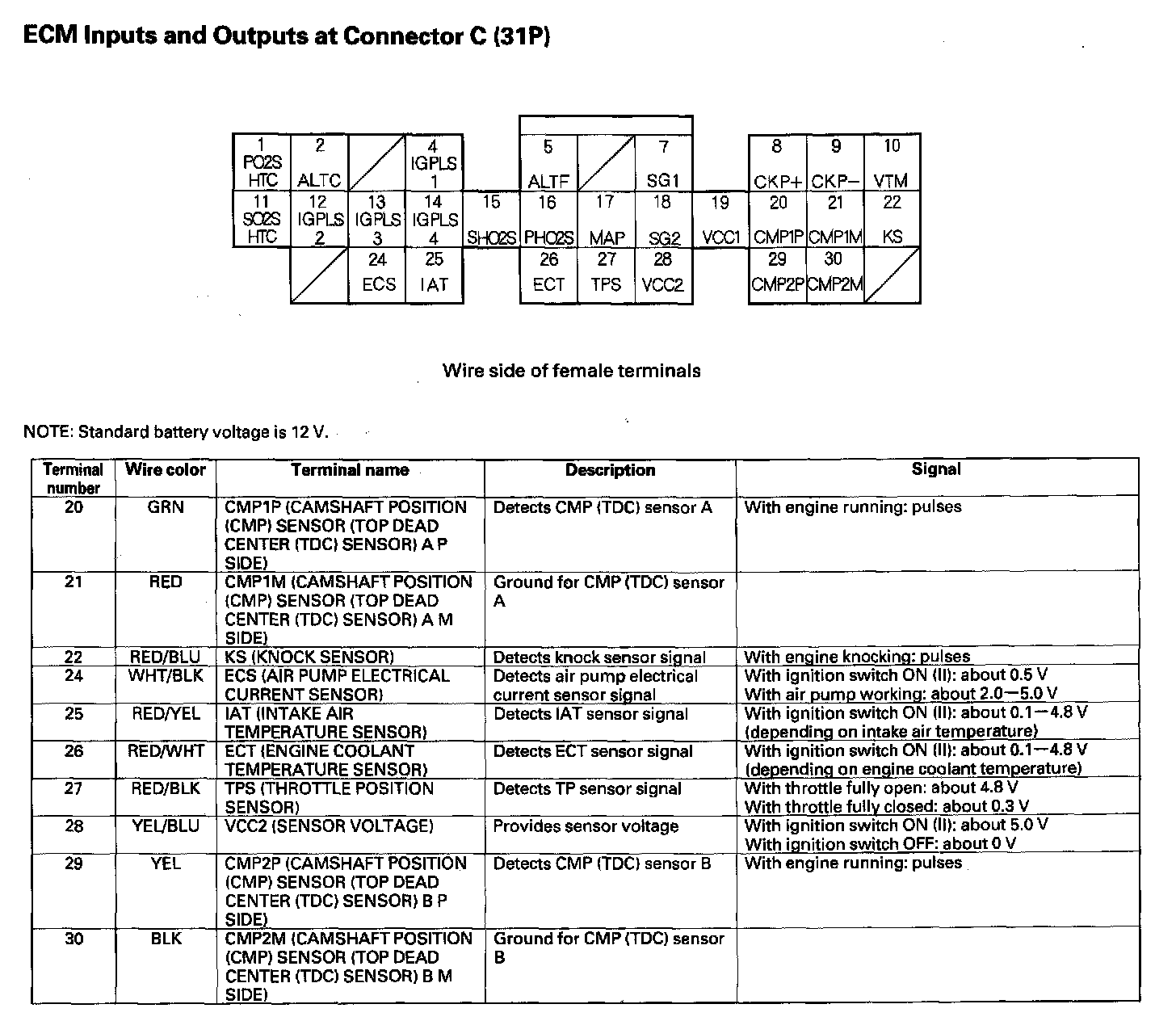 ECM Inputs And Outputs At Connector C (31P):