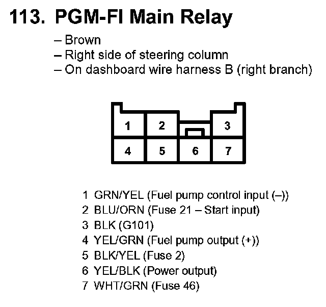 113. PGM-FI Main Relay: