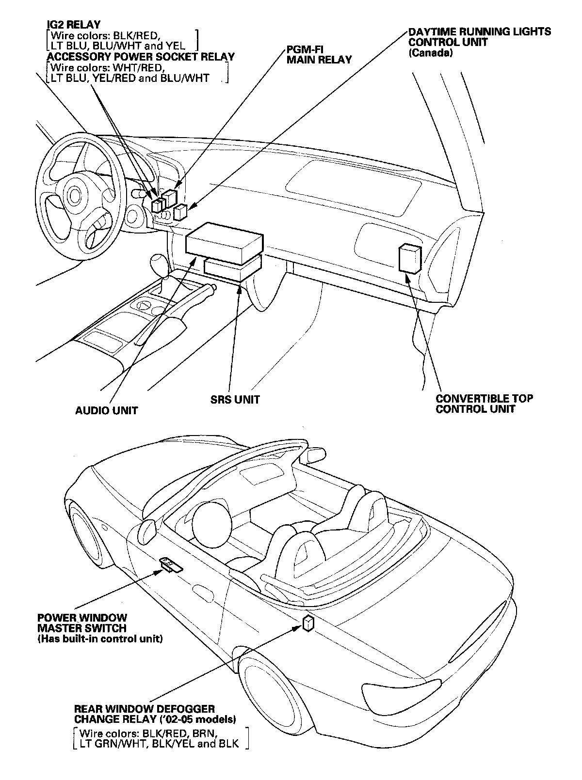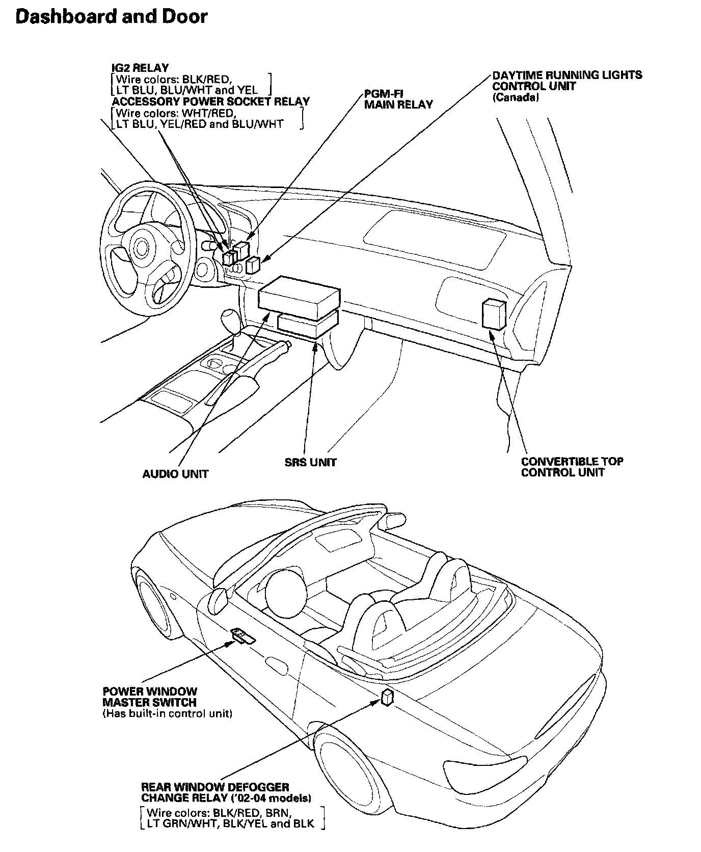 Relay And Control Unit Locations - Dashboard And Door: