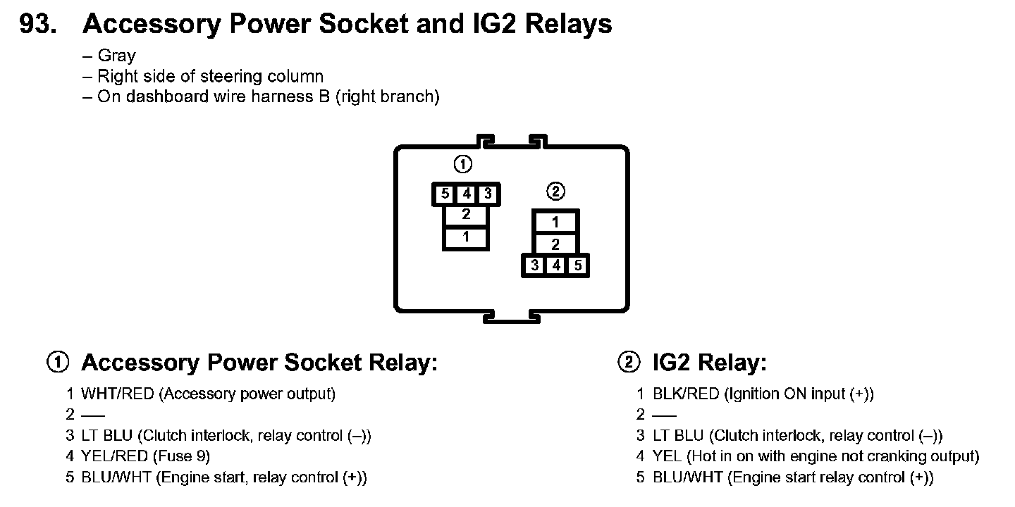 93. Accessory Power Socket And IG2 Relays:
