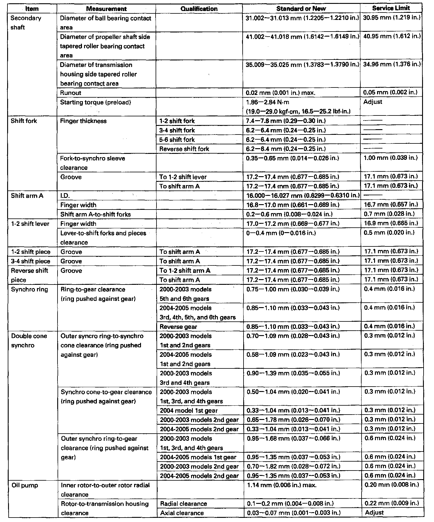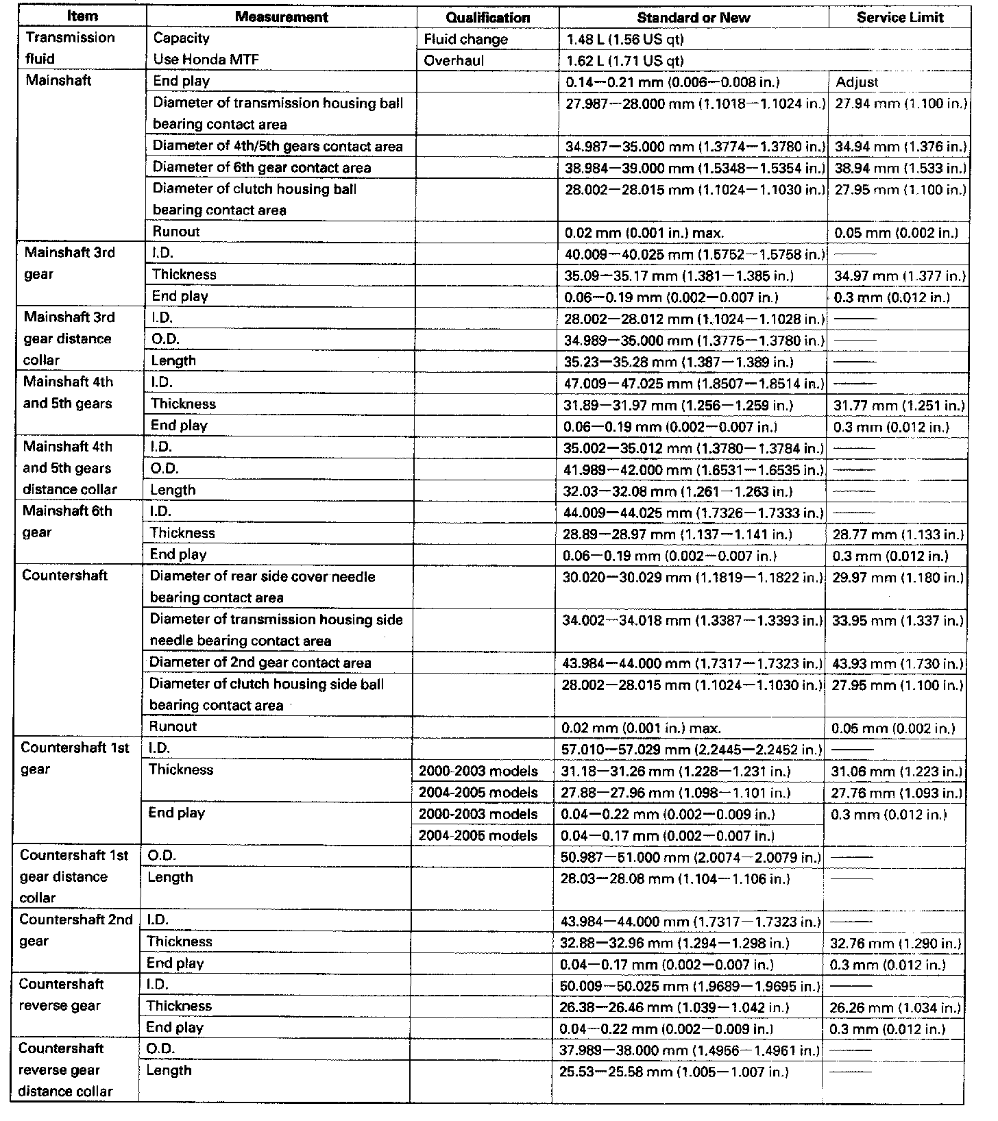Home >> Honda >> 2005 >> S2000 L4-2.2L >> Repair and Diagnosis >> Specifications >> Mechanical Specifications >> Manual Transmission/Transaxle