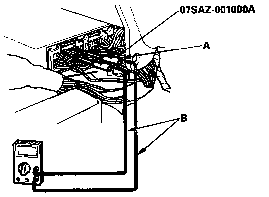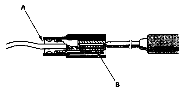 3. If you cannot get to the wire side of the connector or the wire side is sealed (A), disconnect the connector, and probe the terminals (B) from the terminal side. Do not force the probe into the connector.