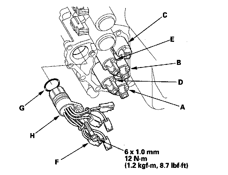 17. Install the new O-ring (G) on the shift solenoid harness connector (H), and install the connector in the transmission housing.